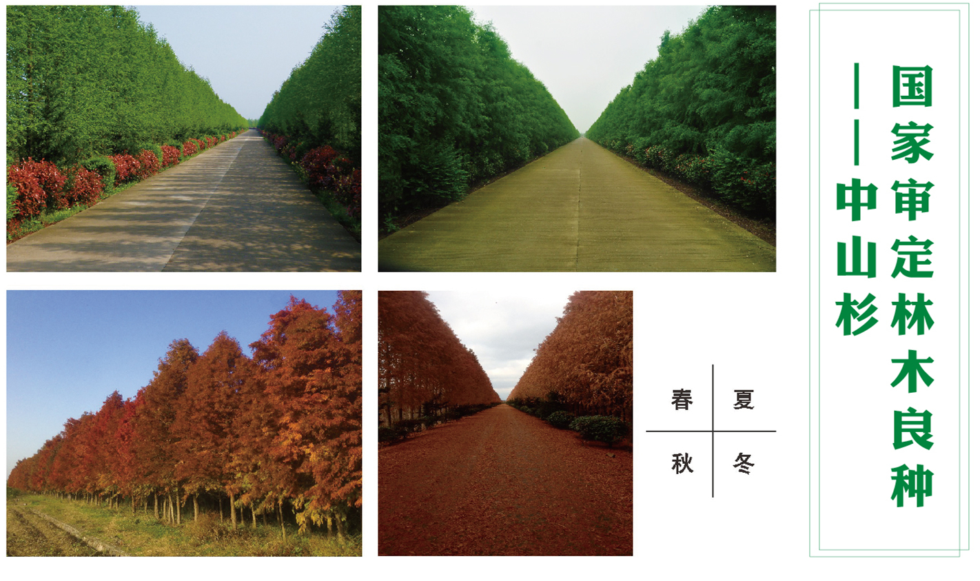 中山杉是中国国家级的园林绿化良种木,在园林绿化、生态建设和滩涂造林等许多领域中都可以发挥其重要作用。 因其树冠优美、绿色期长、耐水耐盐等生态特性,已被广泛应用于滩涂湿地、生态园区、城市绿地等环境绿化,也呈现其应用于绿墙、夹景、背景树方面的绿化功能。