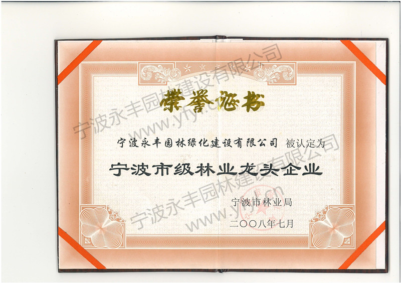宁波市林业局近日公布了首批通过认定的市级林业龙头企业名单。宁波永丰园林绿化建设有限公司、宁波市福泉山茶场、象山超翔森果绿化有限公司等52家企业榜上有名。