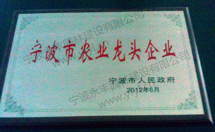 2012年6月,宁波永丰园林绿化建设有限公司荣获宁波市人民政府颁发的“宁波市农业龙头企业”称号。