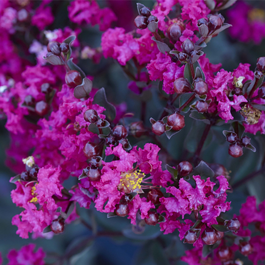 黑钻紫薇有红、白、紫等九种花色,叶片均为深紫色,花期最长可达4个月,观叶期长达9至10个月。室外栽植温度 -15℃ ~ 45℃,适合我国绝大多数地区栽植,对于白粉病,煤污病,褐斑病等紫薇常见疾病有极强的抗性。因其观赏价值高、抗性强,黑钻紫薇一经推出,即受到市场广泛的关注,被称为“革命性”的紫薇新品种。